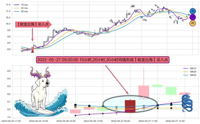 ⚀ 2022-05-27 09:00:00小时显现 10小时-20小时-30小时均线 【蛟龙出海】买入点 看多信号,后市看涨,买入