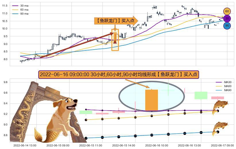 ⚀ 2022-06-16 09:00:00小时显现 30小时-60小时-90小时均线 【鱼跃龙门】买入点 看多信号,后市看涨,买入