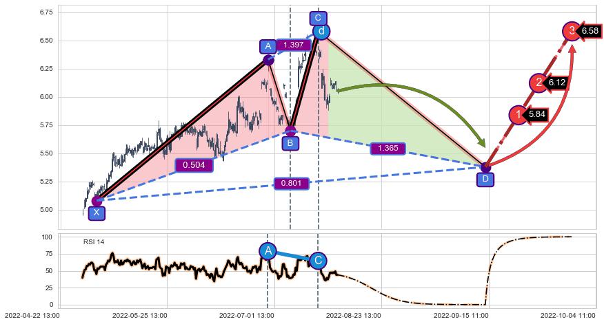 ➢ 谐波价格A点比C点低 ⤵,【RSI】指标A点比C点高 ⤴️