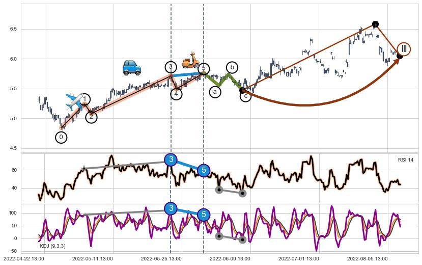 ➢ a,c调整浪MACD, RSI, KDJ走势都【未出现】背离,abc走势延续, 5浪反转概率增强