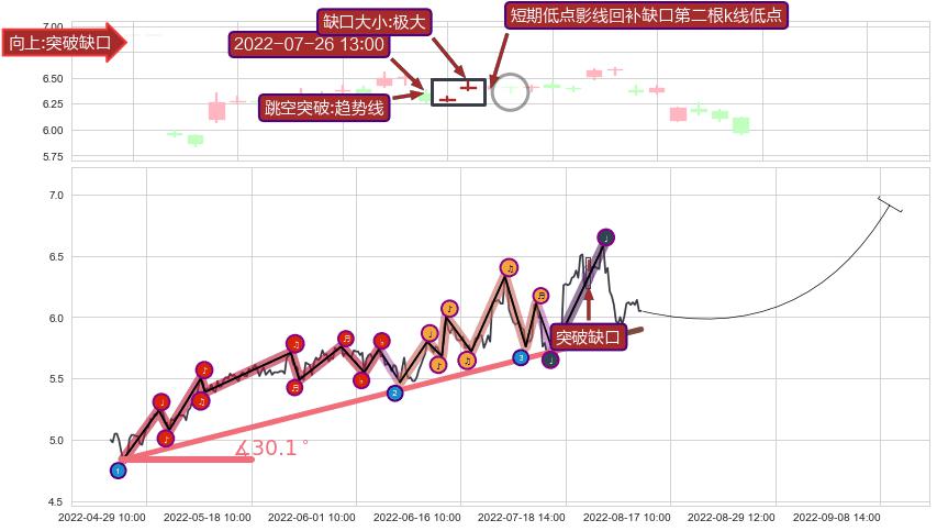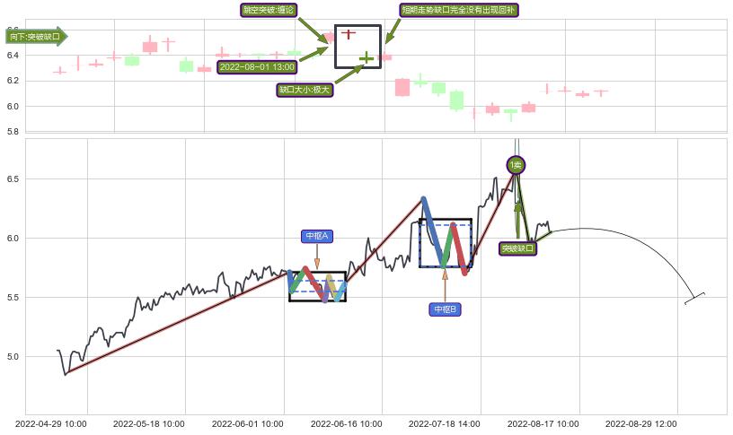 ➢ 2022-08-01 13:00形成:向下跳空【突破】缺口
