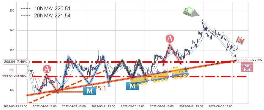 ♘ 支撑价格位208.04,可信任强度94.02%,距离最后交易2022-08-12 14:00形成的收盘价格224.90相差 -7.49%