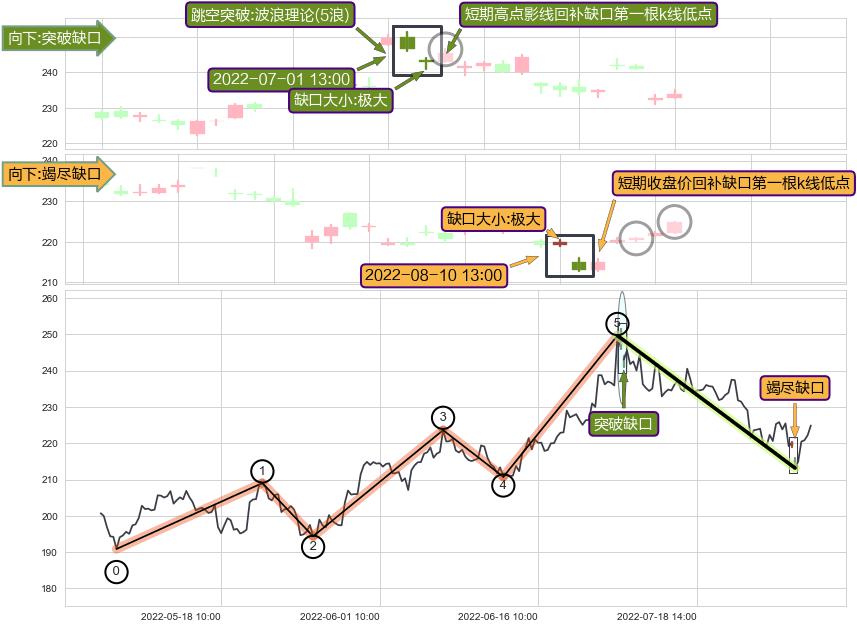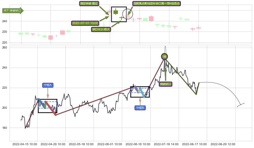 ➢ 2022-08-10 13:00形成:向下跳空【竭尽】缺口