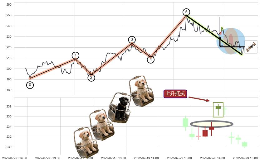♘ 在最后的上升阶段2022-03-23 13:00至2022-07-05 13:00存在 持续未破位的支撑位 ,支撑价格209.82,支撑可信任强度82.25%,其距离最后价格224.90相差 -6.70%
