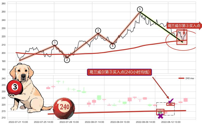 ➣ 收盘价(08-11:14: 220.84 )→回踩→第一根k线低点(08-09:14: 219.01 )