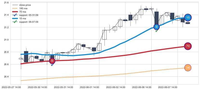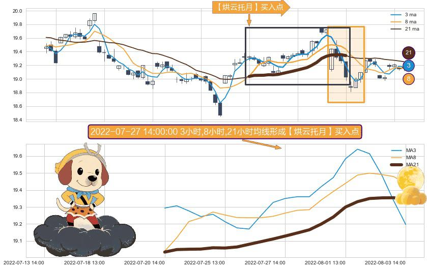 ⚀ 2022-07-20 14:00:00小时-2022-08-03 14:00:00小时显现 3小时-8小时-21小时均线 【烘云托月】买入点 看多信号,后市看涨,买入