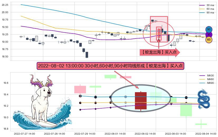 ⚀ 2022-08-02 13:00:00小时显现 30小时-60小时-90小时均线 【蛟龙出海】买入点 看多信号,后市看涨,买入
