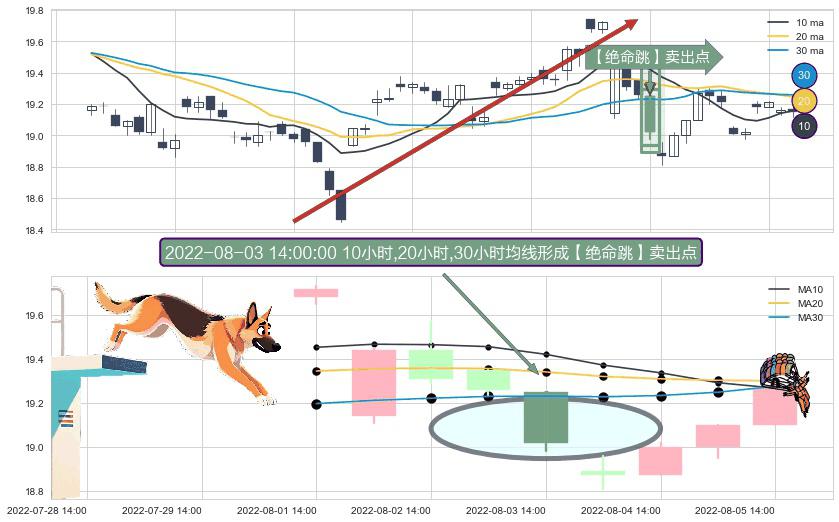 ⚀ 2022-08-03 14:00:00小时显现 10小时-20小时-30小时均线 【绝命跳】卖出点 看空信号,后市看跌,卖出