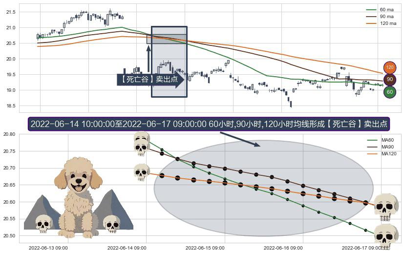 ⚀ 2022-06-14 11:00:00-小时至2022-06-17 09:00:00-小时显现 60小时-90小时-120小时均线 【死亡谷】卖出点 看空信号,后市看跌,卖出