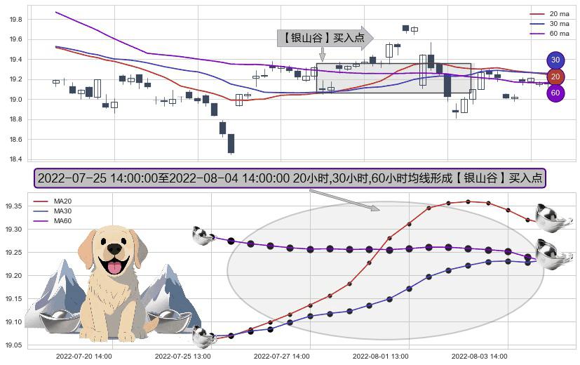 ⚀ 2022-07-26 13:00:00-小时至2022-08-04 14:00:00-小时显现 20小时-30小时-60小时均线 【银山谷】买入点 看多信号,后市看涨,买入