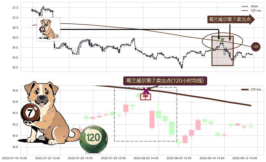 ⚀ 2022-08-01 14:00:00-小时显现 葛兰威尔均线 120小时均线 第⑦卖出点 下降趋势的中继信号,后市看跌,卖出信号