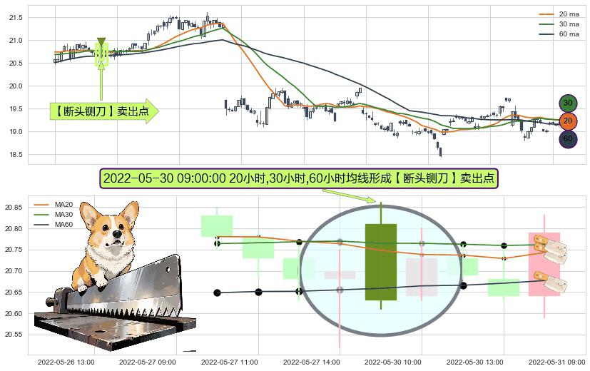 ⚀ 2022-05-30 09:00:00小时显现 20小时-30小时-60小时均线 【断头铡刀】卖出点 看空信号,后市看跌,卖出