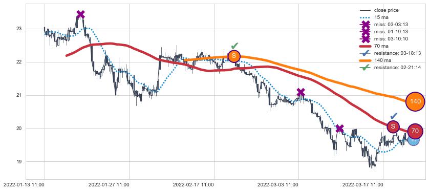 ⚂ 2022-07-29 13:00:00-小时均线向上突破,2022-08-02 14:00:00-小时重新下穿均线破位,均线阻力再次生效