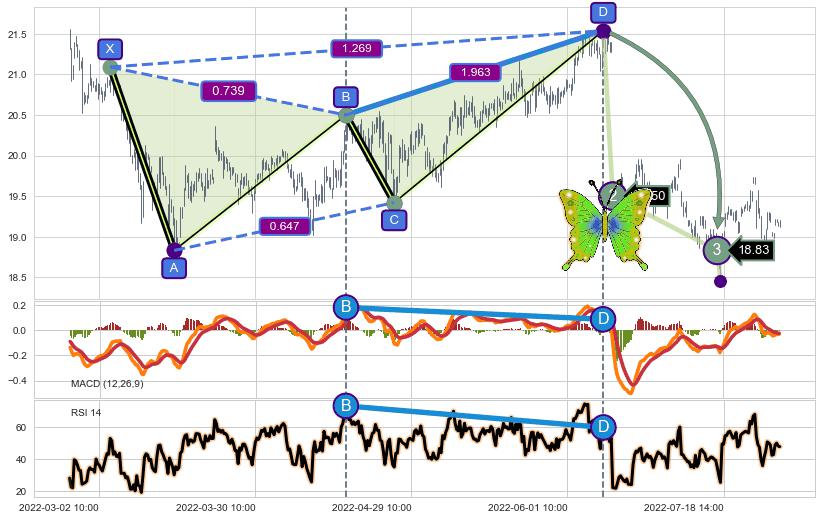 ➣ 已完成【蝴蝶】形态起点X: 03-03:13, 终点D: 06-08:14, 共317交易小时
