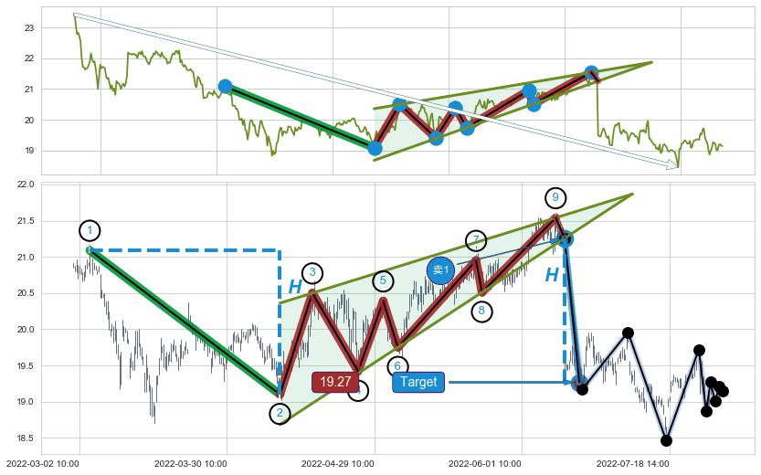 ➢ 最小中继整理跌幅→𝐇: 1.9900 (𝐇楔型旗杆的长度:楔型起点→顶点)