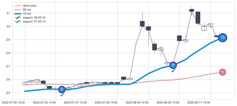 上涨趋势07-20 13:00-08-12 14:00,均线15确认关键支撑2处
