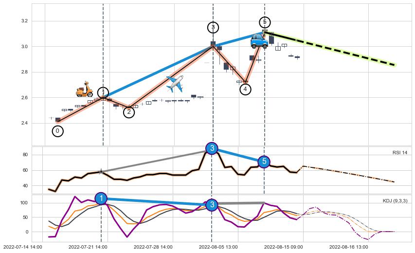 | 4 🅚:下跌抵抗 ➕ 🌊:波浪理论猜想上涨浪5已形成,猜想后续形成回调abc下跌(均值回复) ☞ 看空信号 ⇥ 【🅚线】交织【图形】⇥ 综合量化分数: 47 | > |