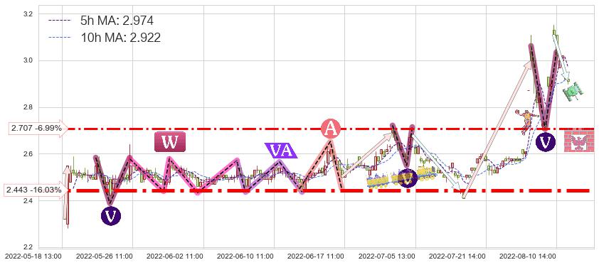 ♘ 支撑价格位2.443,可信任强度97.15%,距离最后交易2022-08-12 14:00形成的收盘价格2.910相差 -16.03%