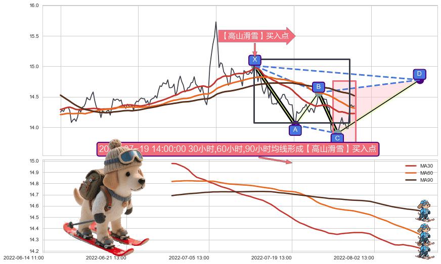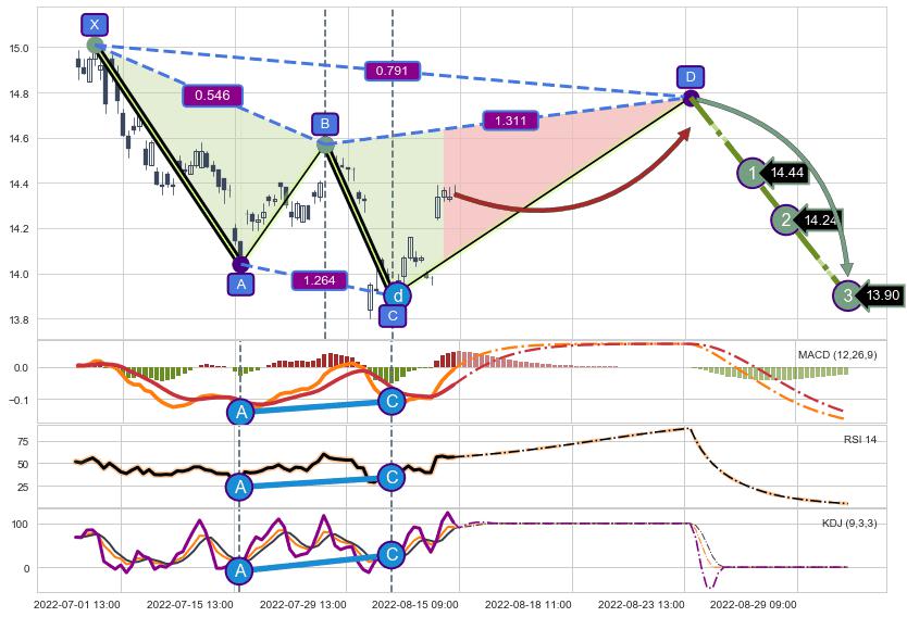 ➣ D点拟合预测价格14.78,距离最后交易收盘价格14.35相差 +2.99%