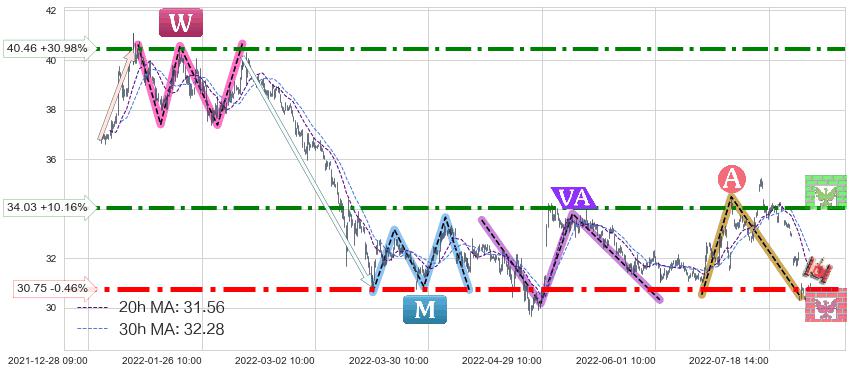 ♞ 20小时均线:31.56,30小时均线:32.28→ 快线<慢线