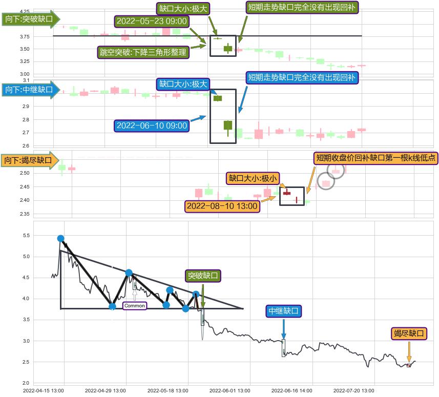 ➢ 2022-08-10 13:00形成:向下跳空【竭尽】缺口