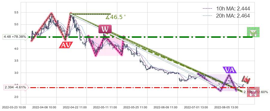 ♘ 阻力价格位4.48,可信任强度97.14%,距离最后交易2022-08-12 14:00形成的收盘价格2.510相差 +78.38%