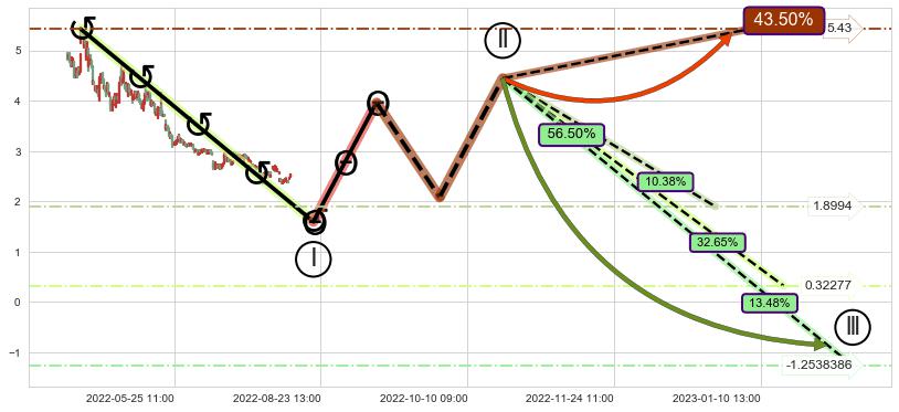 ➢ 大趋势反转(突破5浪起点位置)概率43.50%