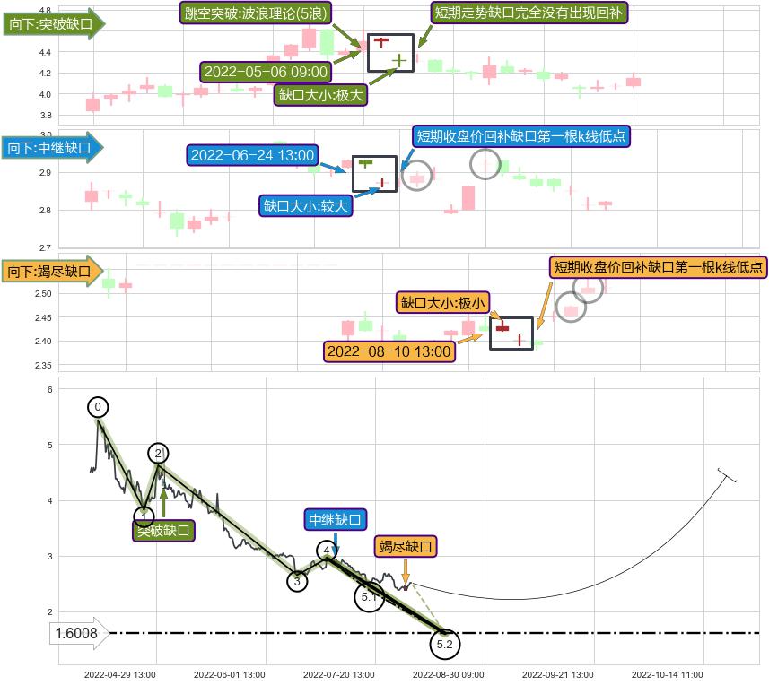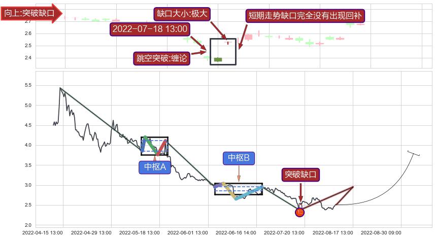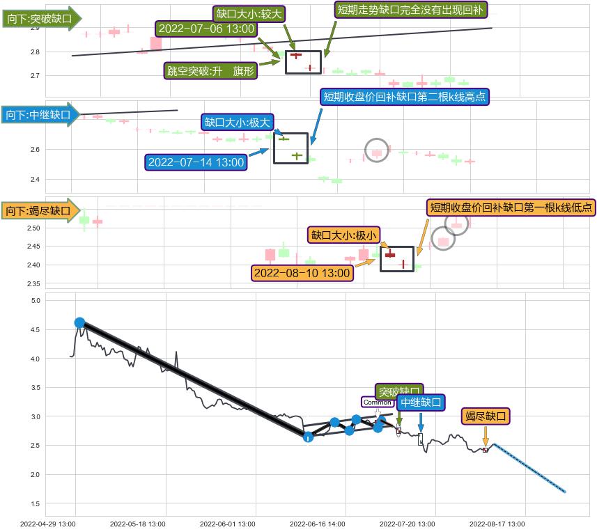 ➢ 2022-08-10 13:00形成:向下跳空【竭尽】缺口