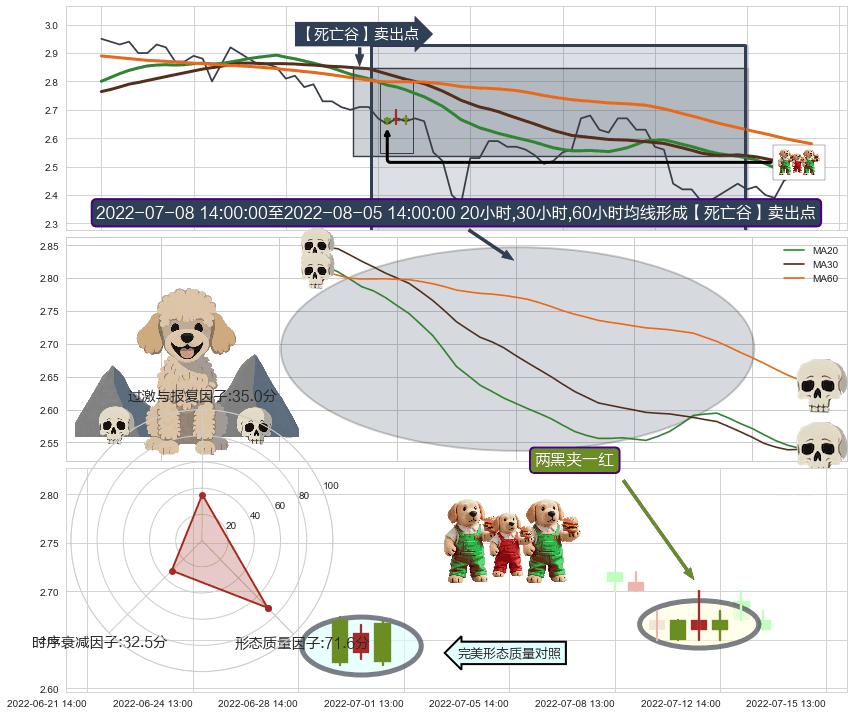 | 3 🅚:【死亡谷】卖出点 ➕ 📐:升旗形下行突破支撑位破位, 猜想持续下沉下跌,被突破的支撑位已变为阻力位 ☞ 看空信号 ⇥ 【均线】交织【图形】⇥ 综合量化分数: 47 | > |