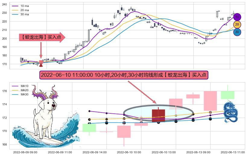 ⚀ 2022-06-10 11:00:00小时显现 10小时-20小时-30小时均线 【蛟龙出海】买入点 看多信号,后市看涨,买入
