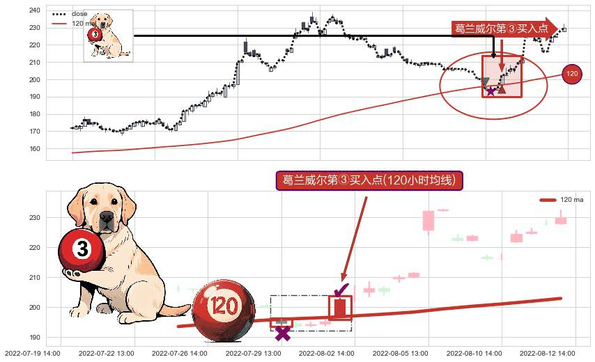 ⚀ 2022-08-02 13:00:00-小时显现 葛兰威尔均线 120小时均线 第③买入点 上升趋势的中继信号,后市看涨,买进信号