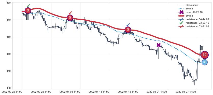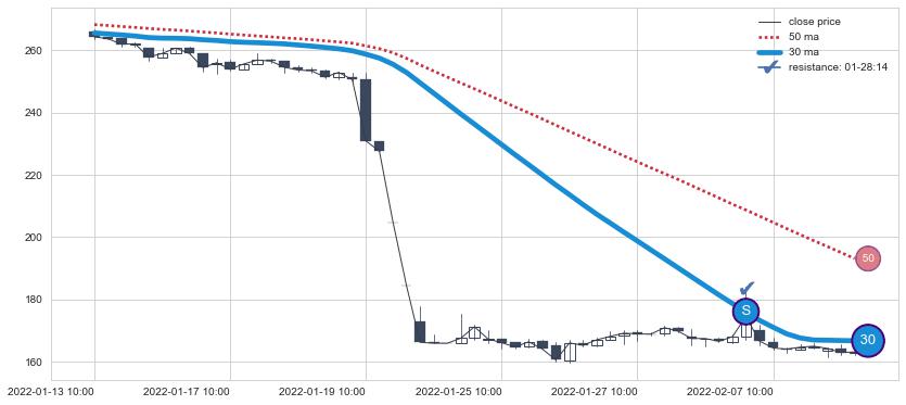 ⚀ 2022-05-23 09:00:00小时-2022-07-15 13:00:00小时显现 30小时-60小时-90小时均线 【战机起航】卖出点 看空信号,后市看跌,卖出