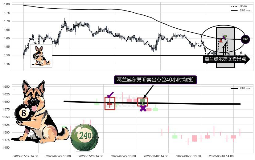 ⚁ 240小时均线 第⑧卖出点 属于 均线服从 信号,属于趋势运行的【常态】即信号期望为下降趋势的中继