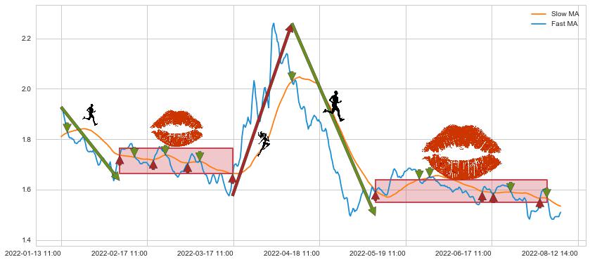 05-10 11:00至08-01 14:00 慢线与快线多次接触,存在上下穿越,有缠绕