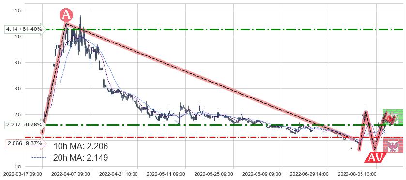 ♘ 阻力价格位4.14,可信任强度57.60%,距离最后交易2022-08-12 14:00形成的收盘价格2.280相差 +81.40%