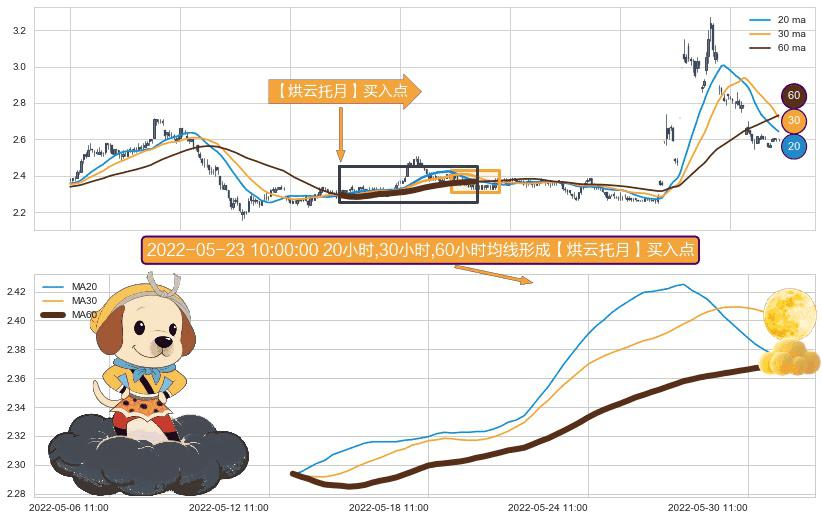 ⚀ 2022-05-13 09:00:00小时-2022-05-31 10:00:00小时显现 20小时-30小时-60小时均线 【烘云托月】买入点 看多信号,后市看涨,买入