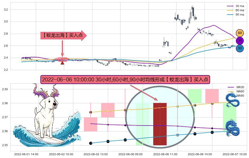 ⚀ 2022-06-06 10:00:00小时显现 30小时-60小时-90小时均线 【蛟龙出海】买入点 看多信号,后市看涨,买入