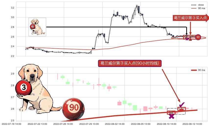 ⚀ 2022-08-11 13:00:00-小时显现 葛兰威尔均线 90小时均线 第③买入点 上升趋势的中继信号,后市看涨,买进信号