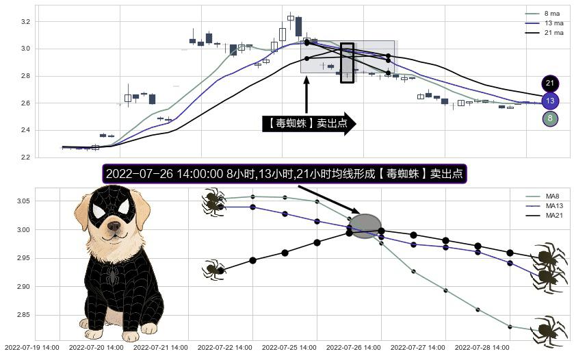 ⚀ 2022-07-26 14:00:00小时显现 8小时-13小时-21小时均线 【毒蜘蛛】卖出点 看空信号,后市看跌,卖出