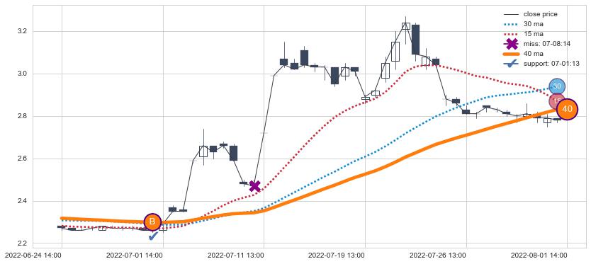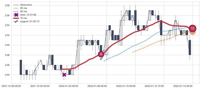 ⚄ 价格在均线获取支撑后再次向上反弹了【较短】距离, 第②买入点 支撑效果【仍需验证】
