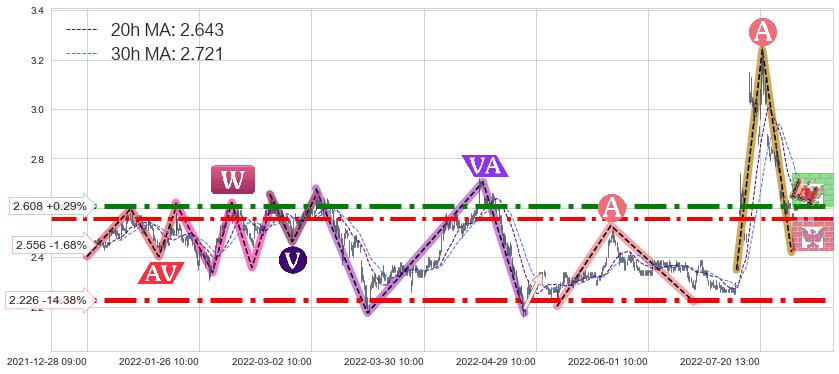 ♘ 支撑价格位2.226,可信任强度96.31%,距离最后交易2022-08-12 14:00形成的收盘价格2.600相差 -14.38%
