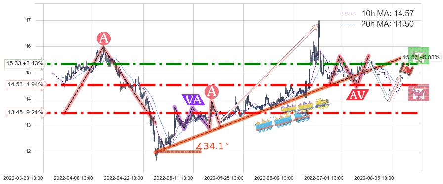 ♞ 10小时均线:14.57,20小时均线:14.50→ 快线>慢线