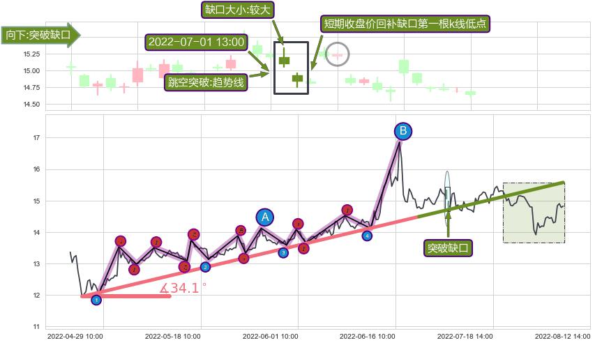 ➢ 2022-07-01 13:00形成:向下跳空【突破】缺口