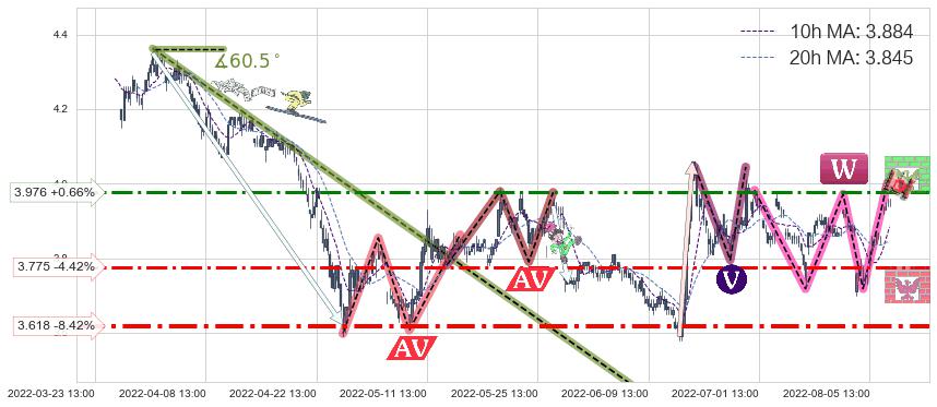 ♘ 阻力价格位3.976,可信任强度68.54%,距离最后交易2022-08-12 14:00形成的收盘价格3.950相差 +0.66%