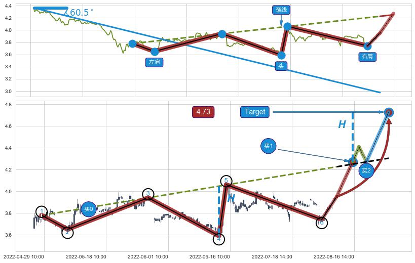 ➣ 最小反转涨幅→𝐇: 0.45688 (头部与颈线垂直距离)