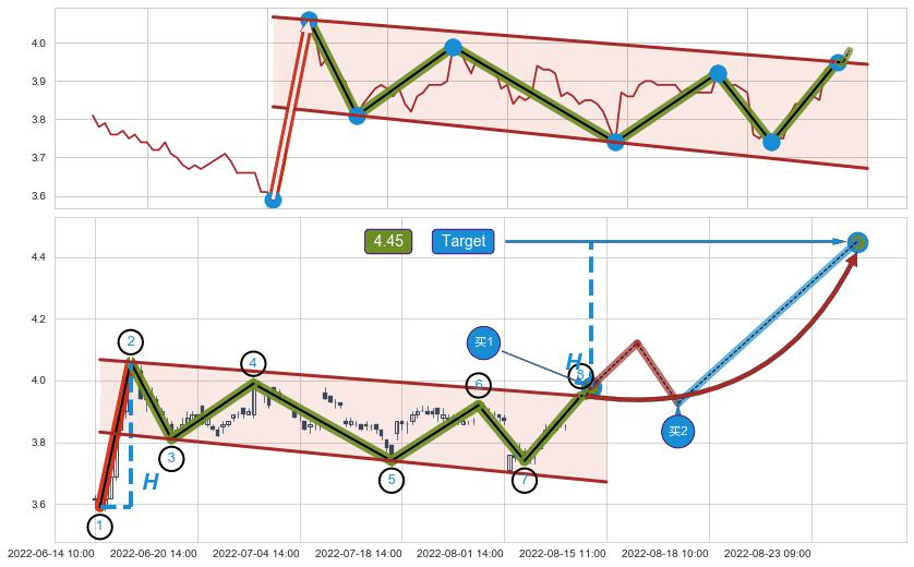 ➢ 【仅预测突破】最后价格:3.950与预测突破价格:3.980→【空间临近】后续最小【整理】第一目标价格→(08-24:11: 4.45 )