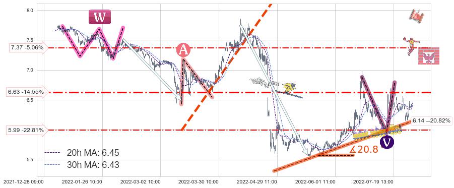 ♘ 支撑价格位6.63,可信任强度64.76%,距离最后交易2022-08-12 13:00形成的收盘价格7.76相差 -14.55%