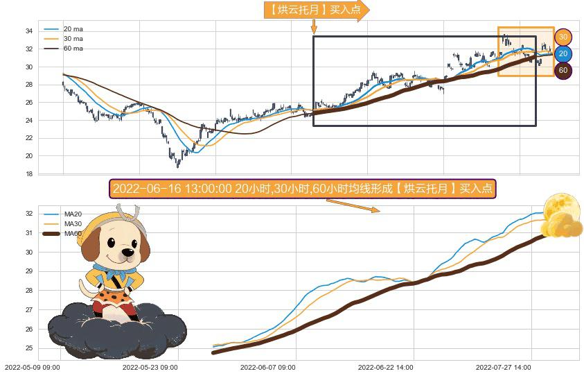 形态多维评估: ⚀ 2022-05-26 09:00:00小时-2022-08-03 14:00:00小时显现 20小时-30小时-60小时均线 【烘云托月】买入点 看多信号,后市看涨,买入