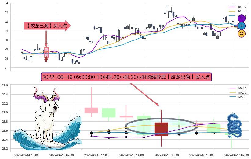 形态多维评估: ⚀ 2022-06-16 09:00:00小时显现 10小时-20小时-30小时均线 【蛟龙出海】买入点 看多信号,后市看涨,买入