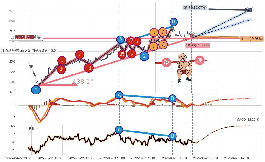 ➢ 预测:2022-08-15 14:00,【小幅回撤】稳定目前上涨趋势的前提下,预测价格:31.14